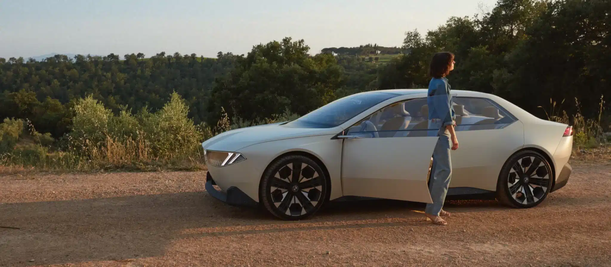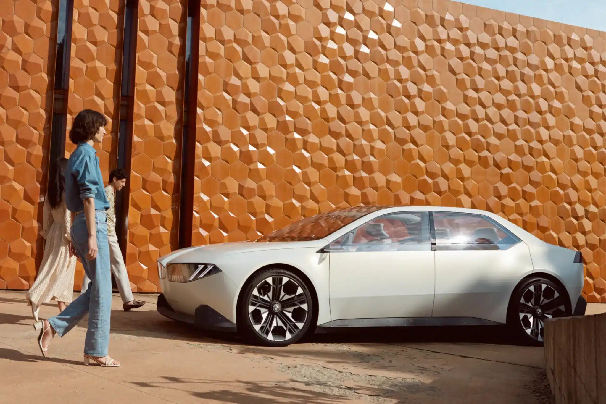 BMW Neue Klasse: un sedán deportivo. Diseño claro, elegante y atemporal. Grandes superficies, líneas llamativas y minimalistas. Con más espacio para características distintivas. Como la superficie de interacción digital de la parrilla y los faros, y una amplia parte trasera con plazas individuales.