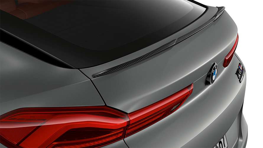 El spoiler trasero BMW de fibra de carbono intensifica el aspecto exclusivo y deportivo del vehículo y garantiza unos valores aerodinámicos optimizados.