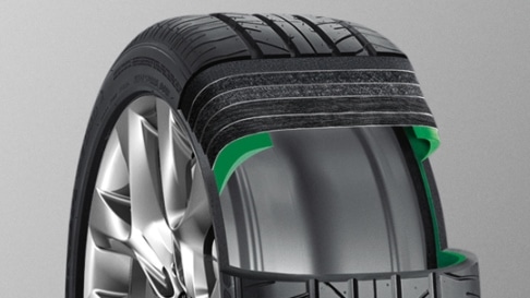 En caso de una pérdida repentina o lenta de presión, el vehículo sigue circulando de forma estable y se mantiene maniobrable sin problemas. La fiabilidad de funcionamiento de los principales sistemas de seguridad, como por ejemplo ABS o DSC, no se ve afectada Ya no es necesario cambiar o reparar al instante el neumático dañado. Quedar parado en zonas peligrosas, como curvas, túneles o acotamientos de autopista, es ya cosa del pasado. Incluso si el neumático queda completamente sin presión, se puede circular hasta 80 km manteniendo una velocidad de 80 km/h y un modo de conducción adecuado sin que se vean afectadas las propiedades de marcha. El conductor no pierde tiempo. Rueda de repuesto, gato, herramientas, etc., son cosa del pasado. Con ello se reduce el peso y se gana espacio en el vehículo.